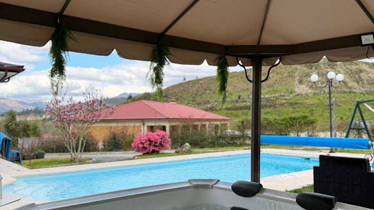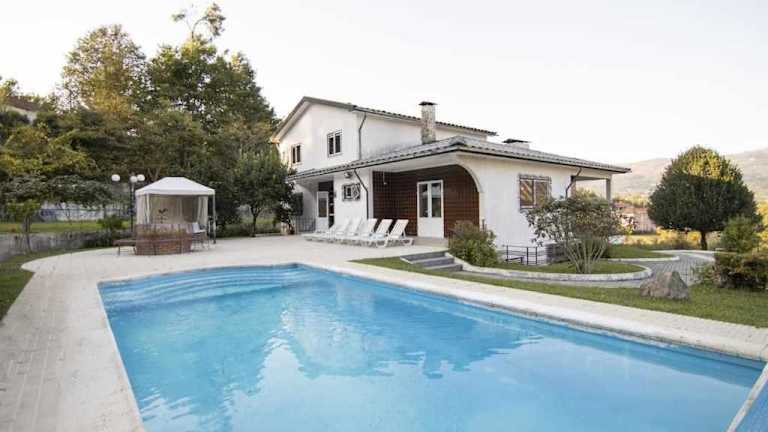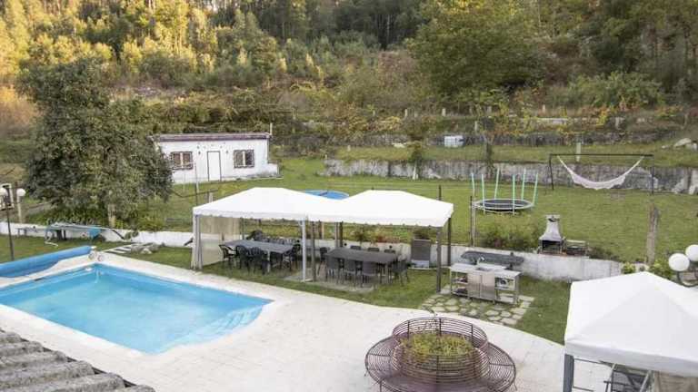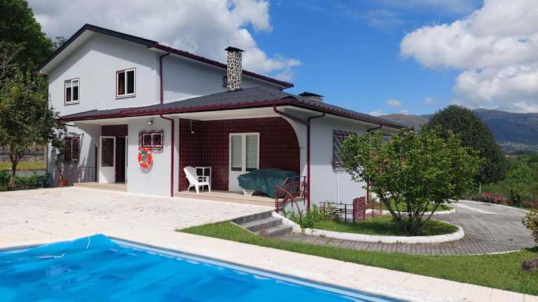 Verbringen Sie einen erholsamen Urlaub im Quintinha de Sabadim Agosto á semana in Arcos de Valdevez. Dieses Ferienhaus bietet Ihnen einen traumhaften Garten, eine Terrasse und einen eigenen Pool. Genießen Sie den Blick auf die umliegenden Berge und entspannen Sie in der komfortablen Unterkunft mit 5 Schlafzimmern. Kostenfreies WLAN steht Ihnen zur Verfügung und Handtücher sowie Bettwäsche werden gestellt. Die Umgebung lädt zu Radtouren ein und in der Nähe finden Sie Sehenswürdigkeiten wie die Kathedrale von Braga Se. Der Flughafen Vigo ist nur 56 km entfernt.