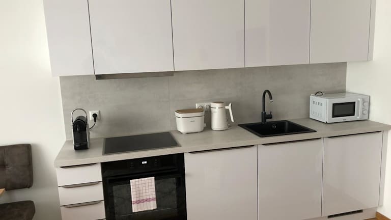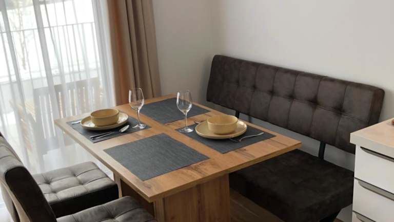 Die Ferienwohnung verfügt über 1 Schlafzimmer, 1 Badezimmer, Bettwäsche, Handtücher und einen Essbereich. Zur Ausstattung gehören ein Flachbild-TV mit Kabelkanälen, eine voll ausgestattete Küche sowie ein Balkon mit Blick auf die Berge.