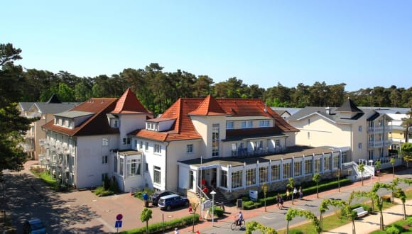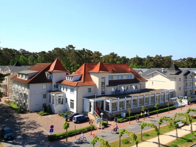 Das Hotel liegt nur etwa 200 Meter vom feinsandigen Strand entfernt, direkt am Boulevard von Baabe.
