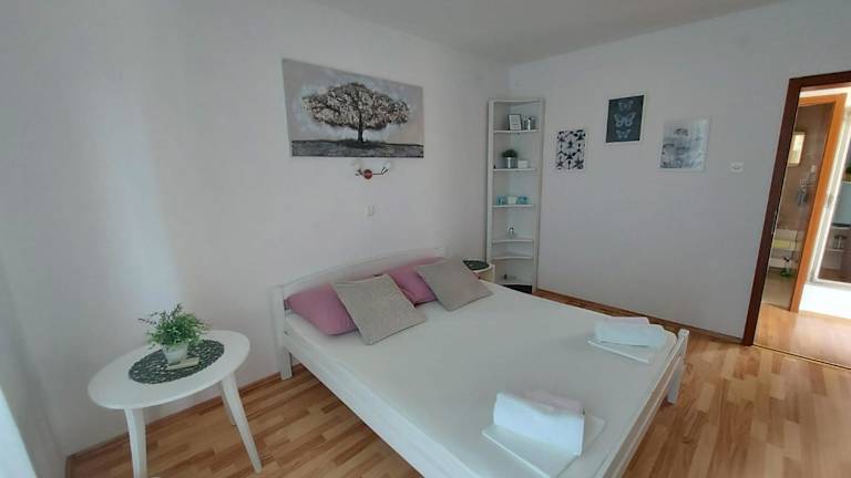 Rab - Apartman Matea ist eine Ferienwohnung mit Stadtblick, die über eine Terrasse und einen Balkon verfügt. Die Unterkunft bietet Meer- sowie Bergblick und ist für bis zu zwei Personen geeignet sowie für Familien. Es gibt einen kostenlosen Privatparkplatz und WLAN in allen Bereichen.