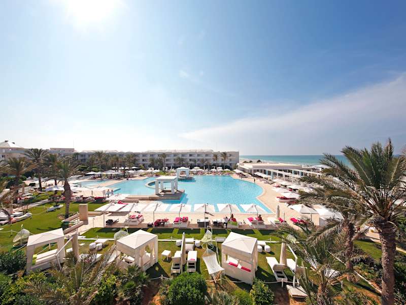 Das Hotel liegt direkt am feinen Sandstrand ‚Plage Sidi Mehrez‘ im Nordosten der Insel Djerba. Der Flughafen Djerba Zarzis befindet sich etwa 20 km entfernt, und das Stadtzentrum Houmt Souk ist in ca. 10 Minuten mit dem Auto erreichbar. Der Golfplatz Djerba Golf liegt rund 10 km vom Hotel entfernt.