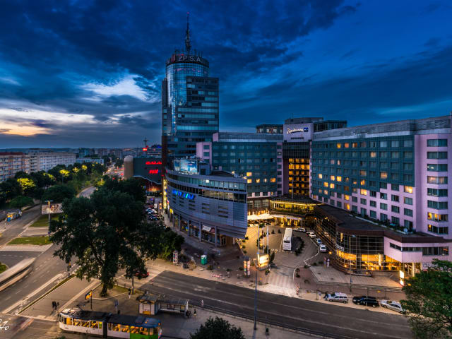 QUALITÄT UND ERFAHRUNG IM HERZEN VON SZCZECIN Willkommen im Radisson Blu Hotel in Stettin, das über 354 komfortable Zimmer und eine ausgezeichnete Lage verfügt. Wir befinden uns im Geschäfts- und Kulturzentrum von Stettin, nur wenige Gehminuten von den wichtigsten Sehenswürdigkeiten wie der Stettiner Philharmonie, der Schloss der Pommerschen Herzöge und Wały Chrobrego sowie vielen bedeutenden Institutionen und Unternehmen entfernt. Dies macht unser Hotel zu einer idealen Wahl, unabhängig davon, ob Sie Stettin aus geschäftlichen oder touristischen Gründen besuchen. Unser Hotel in Stettin liegt außerdem in der Nähe von zwei großen Flughäfen: Der Flughafen in Goleniów ist etwas mehr als 30 Autominuten entfernt und der Flughafen in Berlin ist weniger als 2 Stunden entfernt. Unser Concierge kann ein Taxi für Sie organisieren. Sie können auch nach unten gehen und bei Avis ein Auto mieten. Wir bieten 4 Arten eleganter, klimatisierter, komfortablen Zimmer wie Standard, Superior, Junior Suiten, Suiten alle mit kostenfreiem WLAN, Tee- und Kaffeezubereitungsmöglichkeiten, Kühlschrank und Sat-TV. Unsere Superior Zimmer, Junior Suiten und Suiten verfügen über Minibar, Bademantel und Nespresso-Maschine. Anspruchsvolles Essen und entspannendes SPA Im Hotel können Sie zwischen einem Frühstücksbuffet oder einem Frühstück auf Ihrem Zimmer wählen. Das Hotel verfügt über 2 Restaurants und 2 Bars, darunter eine Cocktailbar mit Blick auf Stettin aus der 11. Etage – Copernicus Club. Es ist der perfekte Treffpunkt mit Live-Musik jeden Dienstag und Freitag. Das EUROPA Restaurant & Café ist ein Restaurant, das sich perfekt für schnelle Geschäftsessen eignet. Renaissance Restaurant – elegant und intim, zweifacher Gewinner des Fine Dining Week Festivals, sein Angebot richtet sich an alle, denen nicht nur Essen wichtig ist, sondern vor allem das Erlebnis, eine Mahlzeit zu feiern. Cukiernia Muffinek bietet seit 1992 eine große Auswahl an Süßigkeiten, die nach traditionellen Rezepten gebacken werden. Wenn Sie sich entspannen möchten, können Sie die Fitness World mit Swimmingpool, Fitnessraum und Sauna kostenlos nutzen. Auf der 2. Etage des Hotels können Sie im luxuriösen Baltica Wellness & Spa aus einer breiten Palette an Behandlungen wählen. Im Hotel ist das Rauchen verboten, mit Ausnahme des Raucherbereichs in der 11. Etage.