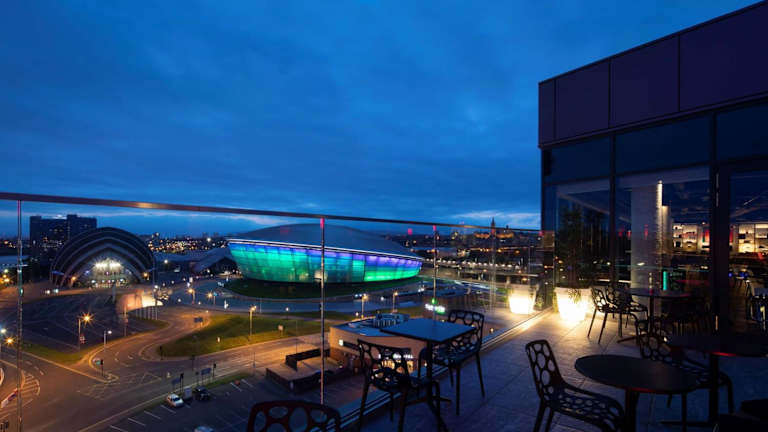 Im Radisson RED Hotel können Sie den ganzen Tag über im OUIBar + KTCHN speisen. Hier können Sie köstliche Speisen, Craft-Bier, Cocktails und eine Partie Billard genießen. Die Bar RED Sky auf dem Dach des Hotels bietet einen atemberaubenden Panoramablick auf Glasgow. Hier können Sie Snacks und Getränke genießen und den Sonnenuntergang über dem Fluss Clyde erleben. Die Cocktailkarte und die Tapas sind hier besonders zu empfehlen.