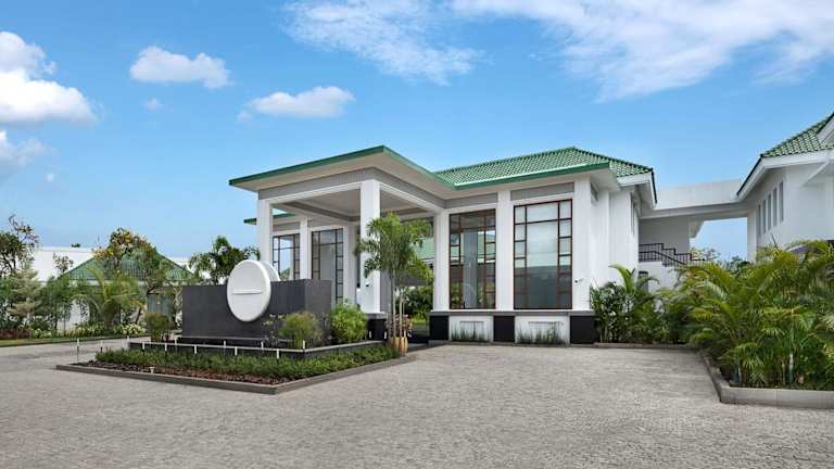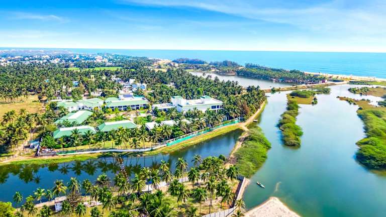 Das Radisson Resort Pondicherry Bay befindet sich in Puducherry, unmittelbar am Strand. Die Umgebung bietet verschiedene Geschäfte, einen Garten und einen Spielplatz. Die Hotelanlage ist so gestaltet, dass sie einen angenehmen Aufenthalt in der Natur ermöglicht.