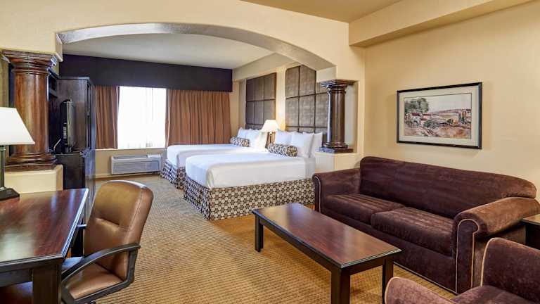 Die Zimmer im Radisson Hotel El Paso Airport sind geräumig und bieten kostenfreies WLAN sowie Kabel-TV und einen DVD-Player. Jedes Zimmer verfügt über ein Schlafsofa, einen Schreibtisch, eine Mikrowelle, einen Kühlschrank und eine Kaffeemaschine. Die Gäste können sich in den gemütlich eingerichteten Zimmern entspannen und den Komfort und die Annehmlichkeiten des Hotels genießen.