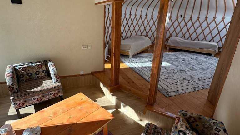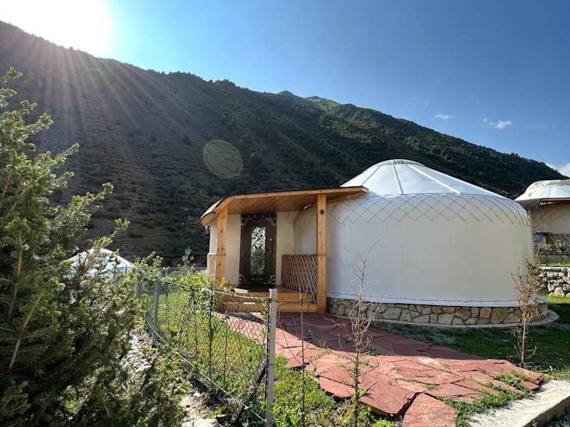 Das RAHMAT yurts bietet einen schönen Garten, eine Terrasse und eine Bar, in denen Sie entspannen und die schöne Umgebung genießen können. Das freundliche Personal an der Rezeption steht Ihnen zur Verfügung, um Ihnen Informationen über die Umgebung zu geben und Ihnen bei Ihren Anliegen behilflich zu sein.