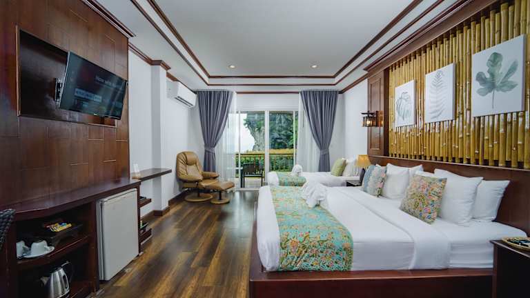 Die Zimmer im Railay Phutawan Resort sind geschmackvoll eingerichtet und bieten eine gemütliche Atmosphäre mit ländlichen Holzmöbeln und thailändischen Akzenten. Jedes Zimmer verfügt über Annehmlichkeiten wie eine Minibar und einen Kühlschrank. Die Badezimmer sind mit Kalt- und Warmwasserduschen ausgestattet und bieten alles, was Sie für einen angenehmen Aufenthalt benötigen.