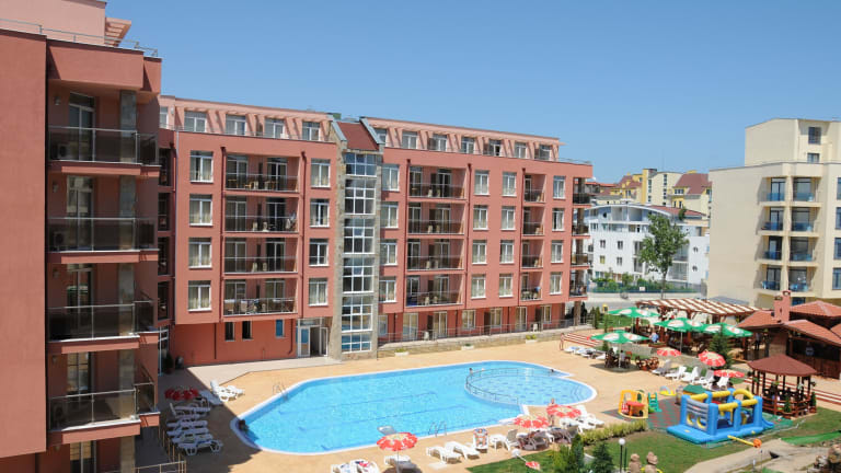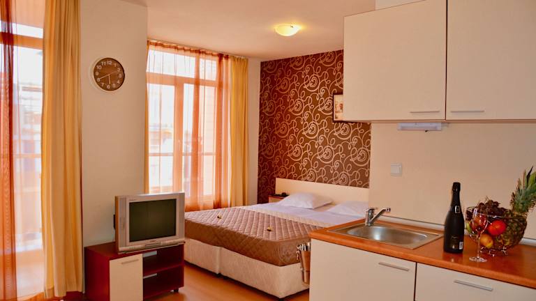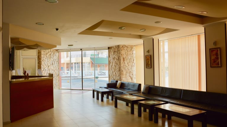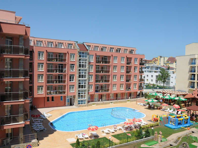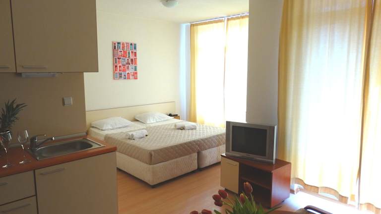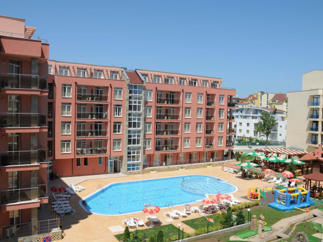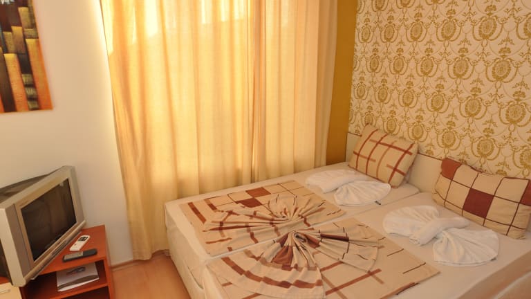 Das Hotel befindet sich in zentraler Lage in Sonnenstrand, nur wenige Schritte vom Strand entfernt. Die Entfernungen sind wie folgt: ca. 30 km zum Flughafen, ca. 200 m zum Strand, ca. 2 km zum Stadtzentrum und ca. 30 m zum Bahnhof.