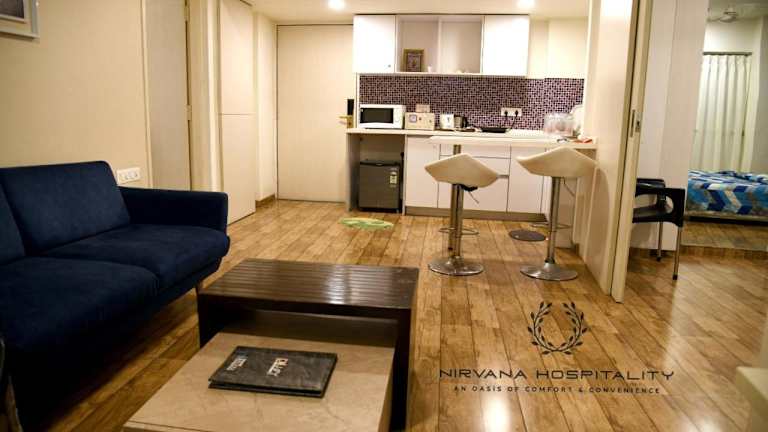 Das klimatisierte Apartment im Relax Inn at Rajhans Belliza Appartment Units besteht aus zwei separaten Schlafzimmern, einem geräumigen Wohnzimmer, einer voll ausgestatteten Küche und zwei Bädern. Jedes Zimmer ist komfortabel eingerichtet und bietet alle Annehmlichkeiten, die Sie für einen angenehmen Aufenthalt benötigen. Ein Flachbild-TV sorgt für Unterhaltungsmöglichkeiten.