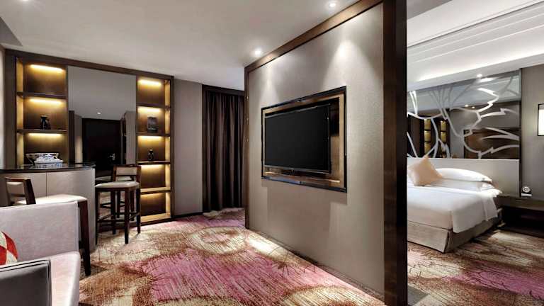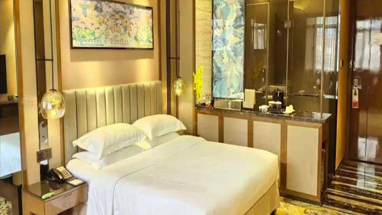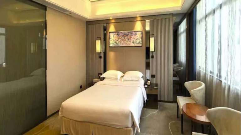 Die Zimmer im Ramada Foshan Hotel sind in sanften Farbtönen gehalten und bieten eine ruhige und komfortable Atmosphäre. Jedes Zimmer ist mit Kunstwerken an den Wänden, einem Flachbild-Kabel-TV, einem Schreibtisch, einer Minibar und einem Safe ausgestattet. Im angrenzenden Badezimmer finden Sie Pflegeprodukte, Hausschuhe, einen Haartrockner und kostenfreie Pflegeprodukte. Das Hotel bietet auch eine Gepäckaufbewahrung und Spinde für Ihre Bequemlichkeit.