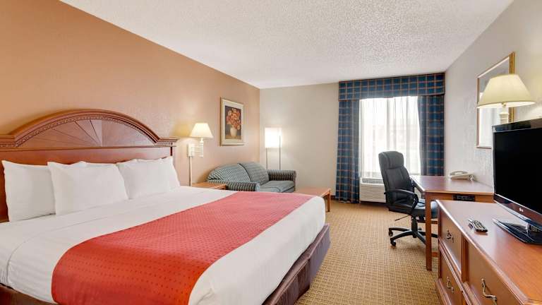 Die 78 Zimmer des Ramada by Wyndham Provo verteilen sich auf 2 Etagen und sind über einen Aufzug erreichbar. Die Zimmer sind gemütlich eingerichtet und verfügen über Annehmlichkeiten wie Klimaanlage, Mikrowelle und WLAN. Das Hotel bietet auch rollstuhlgerechte Einrichtungen.
