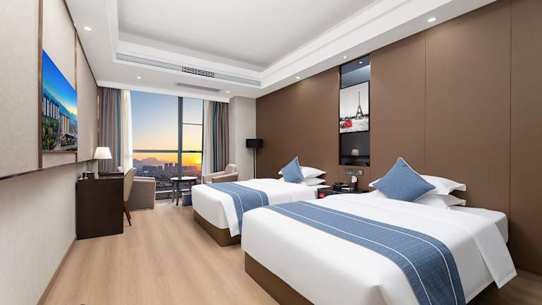 Die Zimmer im Ramada by Wyndham Zhangjiajie sind klimatisiert und bieten Ihnen einen angenehmen Rückzugsort nach einem langen Tag voller Abenteuer. Die moderne Ausstattung sorgt für Komfort und Bequemlichkeit während Ihres Aufenthalts. Kostenloses WLAN ist in allen Bereichen verfügbar.