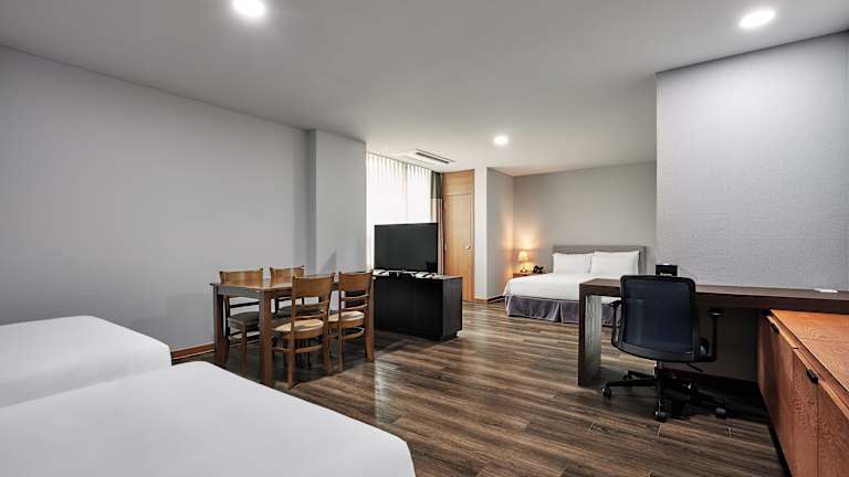 Das Ramada Hotel and Suites Seoul Namdaemun verfügt über 299 Zimmer, die sich über 25 Etagen verteilen. Die Zimmer sind komfortabel und bieten Annehmlichkeiten wie Klimaanlage, Heizung, Safe, Minibar und kostenfreies WLAN. Zur weiteren Ausstattung gehören ein Schreibtisch, ein Kühlschrank und eine Tee-/Kaffeemaschine. Das Hotel bietet auch rollstuhlgerechte Zimmer für Gäste mit eingeschränkter Mobilität.