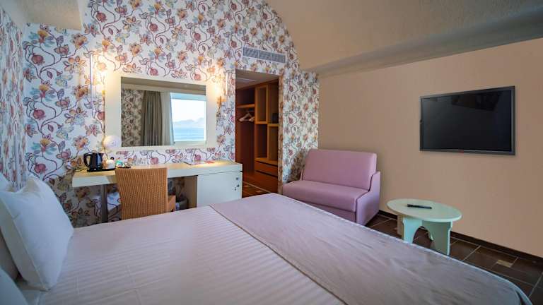 Das Resort bietet 196 Zimmer, die im eleganten mediterranen Stil gestaltet und dekoriert sind. Jedes Zimmer verfügt über eine Klimaanlage, einen Flachbild-TV und ein eigenes Bad mit Badewanne oder Dusche. WLAN ist in allen Bereichen kostenlos verfügbar.
