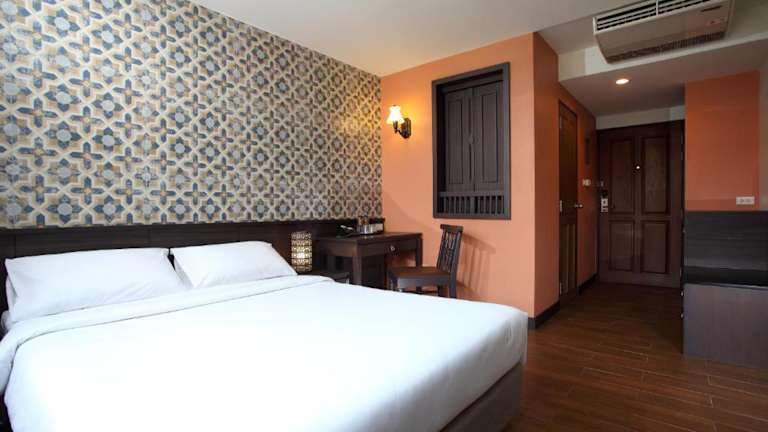 Das Rambuttri Village Plaza - SHA Extra Plus Hotel verfügt über 219 Zimmer, die sich auf zwei 5-stöckige Gebäude verteilen. Die Zimmer sind komfortabel und gemütlich eingerichtet und verfügen über eine Klimaanlage, ein Doppelbett, einen Safe, einen Kühlschrank, ein Telefon, einen Fernseher mit Satelliten-/Kabelempfang und WLAN. Die Badezimmer sind mit einer Dusche, einer Badewanne und einem Haartrockner ausgestattet.