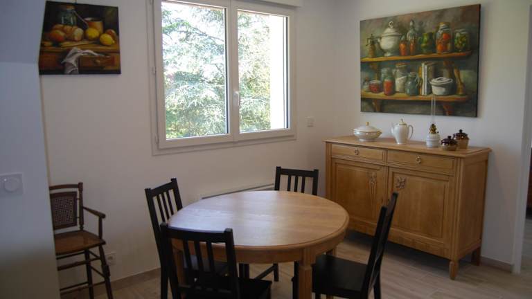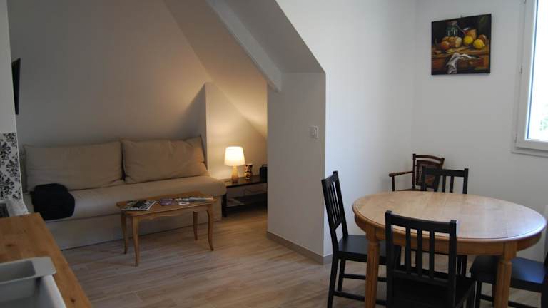 Die Apartments im Les Ramier zeichnen sich durch einen Sitz- und Essbereich aus, wo Gäste entspannen und speisen können.