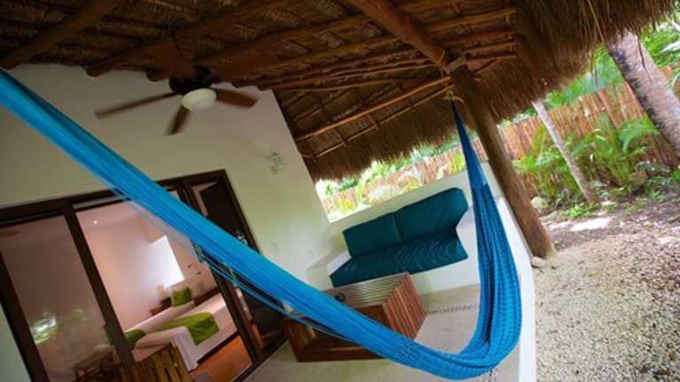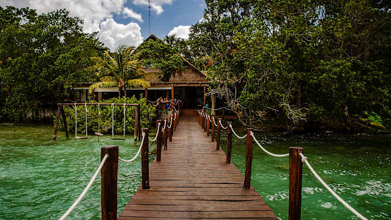 Das Hotel Rancho Encantado in Bacalar ist der perfekte Ort für einen entspannten Aufenthalt direkt am Strand. Genießen Sie kostenfreies WLAN, ein eigenes Restaurant und ein kostenloses Frühstück. Die charmanten Bungalows im Landhausstil bieten Ihnen eine komfortable Unterkunft mit Minibar und Kaffeemaschine. Entspannen Sie im Garten oder nutzen Sie die kostenlosen Kajaks, um die Umgebung zu erkunden. Die Festung San Felipe und der Flughafen Chetumal sind nur eine kurze Fahrt entfernt.
