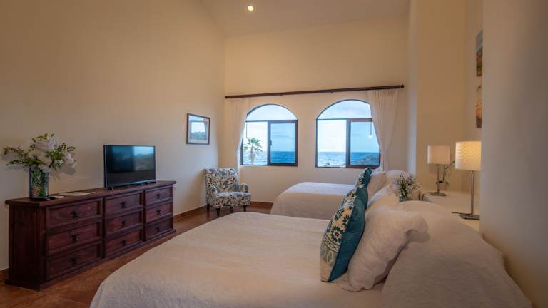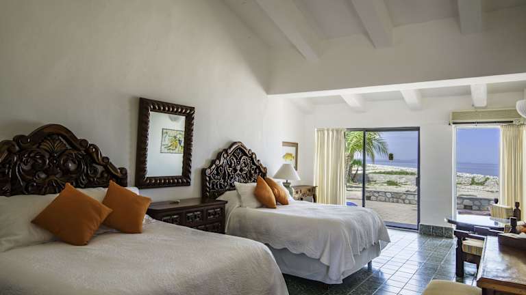 Im Rancho Las Cruces finden Sie eine Auswahl an stilvoll eingerichteten Zimmern, Suiten und Villen, die alle mit einem eigenen Balkon und einem atemberaubenden Blick auf das Meer ausgestattet sind. Die Unterkünfte sind im traditionellen mexikanischen Kolonialstil dekoriert und bieten modernen Komfort wie kostenloses WLAN und Klimaanlage. Einige Zimmer verfügen sogar über einen gemütlichen offenen Kamin, während die Villa mit einem eigenen Pool und einer voll ausgestatteten Küche ausgestattet ist.