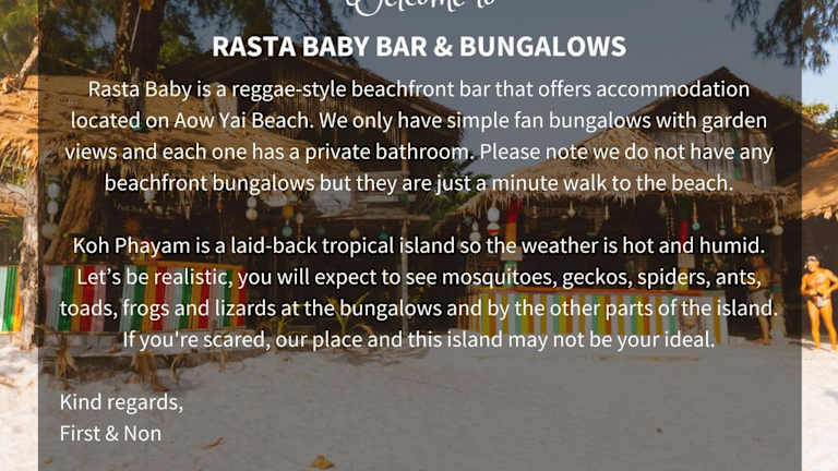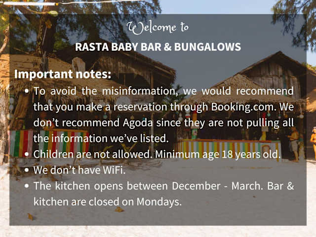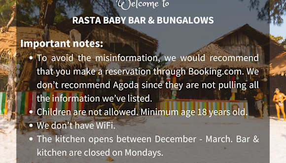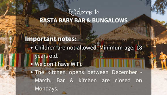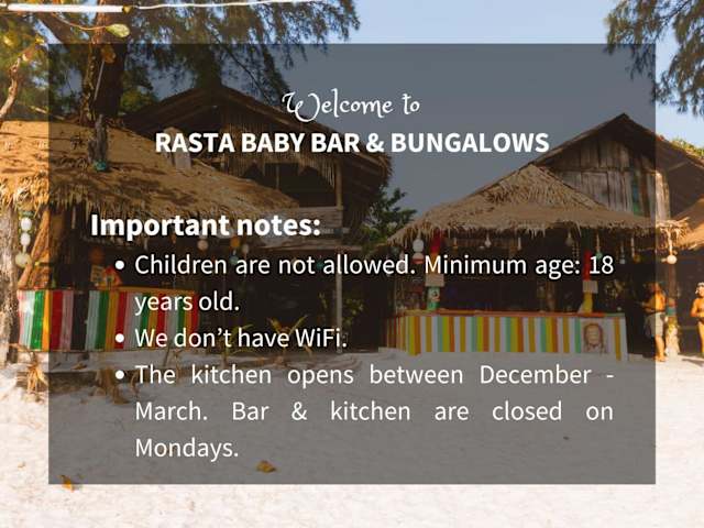 Rasta Baby Bar & Bungalows ist eine Unterkunft, die speziell für junge Reisende geeignet ist und Übernachtungsmöglichkeiten in Bungalows bietet.