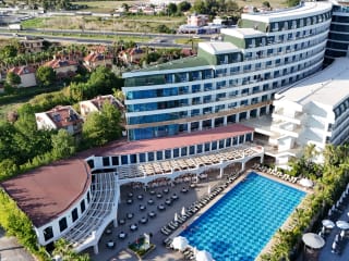INSGESAMTE ZIMMERKAPAZITÄT: 266 INSGESAMTE BETTKAPAZITÄT: 600 Standard Zimmer : 244 Standard-Zimmer (2 Behindertengerechte Freundlich eingerichtet Zimmer 32 m2) Maximale Kapazität: 3 Personen Dimensionen des Zimmers : 24 m2 Es ist unsere Zimmerkategorie, die aus einem Einzelzimmer mit einem Einzelbett und einem Doppelbett, aus einem Badezimmer besteht. Familienzimmer: 18 Familien Zimmern. Maximale Kapazität : 4 Personen Dimensionen des Zimmers: 37 m2 Es ist unsere Zimmerkategorie, die aus zwei Schlafzimmern (ein Doppelbett und ein Einzelbett), aus einem Badezimmer besteht. Suite Zimmer: Es gibt 2 Suite Zimmern. Maximale Kapazität : 3 Personen Dimensionen des Zimmers: 50 m2 Es ist unsere Zimmerkategorie in der Suite Zimmer Kategorie mit insgesamt zwei Zimmern, die aus einem Schlafzimmer (ein Doppelbett), Sitzgruppe, ein Badezimmer (Jacuzzi) und eine Terrasse besteht. Unsere Zimmer sind nach VIP Art gestaltet. MINIBAR: Wird Täglich kontrolliert und Frisch Aufgefüllt mit Wasser, Minerale Wasser & Fruchtsaft. Tower Suite Zimmer: Es gibt zwei Tower Suite Zimmer. Maximale Kapazität : 3 Personen Dimension des Zimmers: 45 m2 Es ist unsere Zimmerkategorie in der Suite Zimmer Kategorie mit insgesamt zwei Zimmern, die aus eine Schlafzimmer (ein Doppelbett), Sitzgruppe, ein Badezimmer (Jacuzzi) besteht. Unser Zimmer ist nach VIP Art gestaltet. MINIBAR: WIRD TÄGLICH KONTROLLIERT UND FRİSCH AUFGEFÜLLT. Wasser, Minerale Waser und Fruchtsaft.