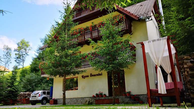 Die Zimmer im Hotel Raza Soarelui sind komfortabel und bieten alles, was Gäste für einen angenehmen Aufenthalt benötigen. Jedes Zimmer verfügt über einen TV, ein eigenes Bad und Zentralheizung, um den Gästen Komfort und Gemütlichkeit zu bieten. Einige Zimmer bieten zudem einen herrlichen Blick auf die Berge oder den Fluss, der die Umgebung durchzieht.