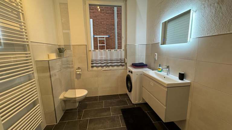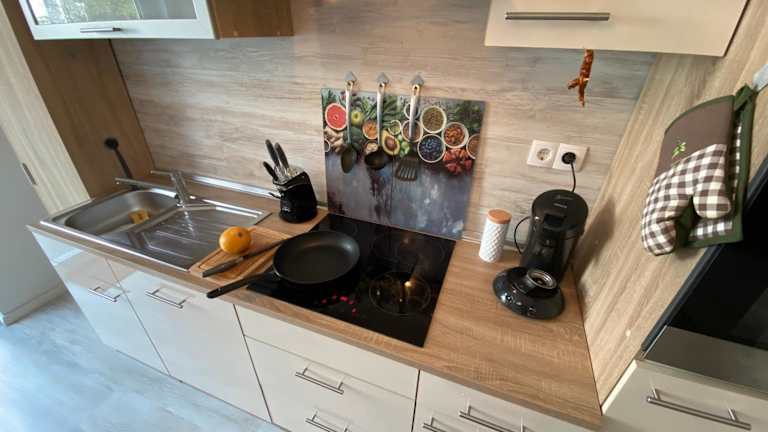Die Ferienwohnung umfasst ein Schlafzimmer, eine voll ausgestattete Küche mit Kühlschrank und Geschirrspüler, einen Flachbild-TV, einen Sitzbereich sowie ein Badezimmer mit Dusche. Handtücher und Bettwäsche werden zur Verfügung gestellt.
