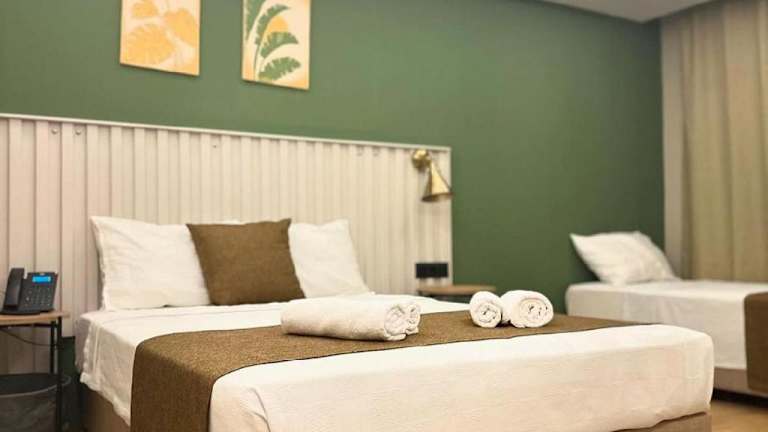 Die Gästezimmer sind ausgestattet mit Klimaanlage, einem Flachbild-TV mit Satellitenkanälen, einem Kühlschrank, einem Wasserkocher sowie einer Dusche. Jedes Zimmer verfügt über ein eigenes Badezimmer, einen Haartrockner und Bettwäsche. Ein Kleiderschrank ist ebenfalls vorhanden.