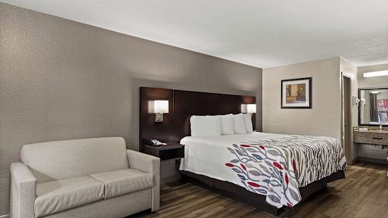 Die Zimmer im Red Roof Inn Baldwin sind gemütlich und komfortabel eingerichtet und bieten alles, was Sie für einen angenehmen Aufenthalt benötigen. Jedes Zimmer verfügt über kostenfreies WLAN, Kabel-TV und eine Kaffeemaschine für Ihren morgendlichen Koffeinkick. Die dunklen Holzmöbel verleihen den Zimmern eine warme und einladende Atmosphäre. Ein Schreibtisch und ein Bügeleisen/-brett sind ebenfalls vorhanden, um Ihren Aufenthalt so bequem wie möglich zu gestalten.