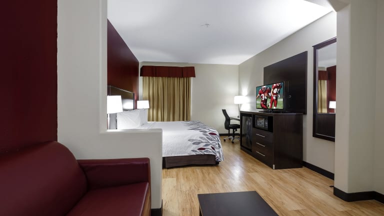 Das Red Roof Inn & Suites Lake Charles bietet komfortable Unterbringung mit modernen Annehmlichkeiten. Die Zimmer sind in warmen Farben gestaltet und sind mit Flachbild-Kabel-TV, Mikrowelle sowie kleinem Kühlschrank ausgestattet. Die Unterkunft verfügt über einen Außenpool, einen Loungebereich und bietet eine 24-Stunden-Rezeption. Wäschemöglichkeiten sind ebenfalls vorhanden, ebenso wie ein Businesscenter.