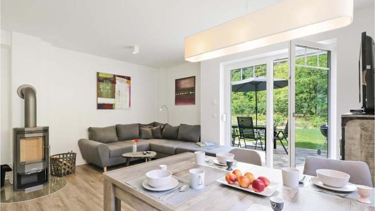 Das Ferienhaus verfügt über zwei Schlafzimmer, ein Wohnzimmer und eine vollständig ausgestattete Küche, die unter anderem mit einem Kühlschrank und einer Kaffeemaschine ausgestattet ist. Zudem umfasst es zwei Badezimmer mit Dusche und Badewanne. Für Unterhaltung sorgt ein Fernseher mit Kabelkanälen.