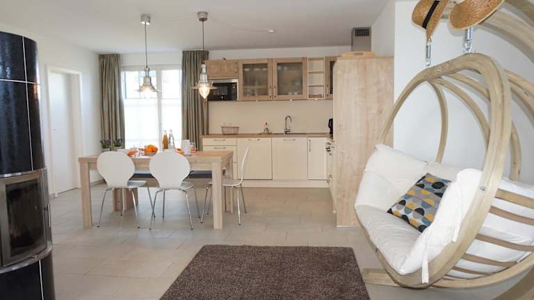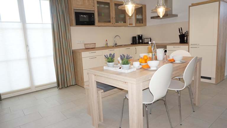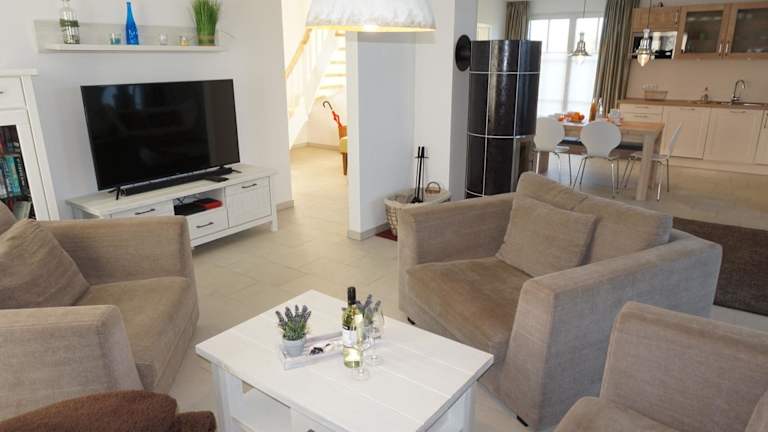 Das Ferienhaus umfasst 3 Schlafzimmer, 2 Badezimmer, ein Wohnzimmer mit Sitz- und Essbereich sowie eine voll ausgestattete Küche mit Kühlschrank, Geschirrspüler und Ofen. Zur Ausstattung gehören ein Blu-ray-Player, ein Flachbild-TV mit Satellitenkanälen, eine Spielekonsole (Nintendo Wii), ein DVD-Player, ein CD-Player sowie eine Kaffeemaschine.