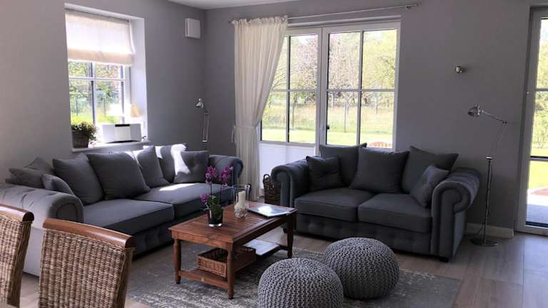 Das Ferienhaus verfügt über eine gut ausgestattete Küche mit Kühlschrank, Geschirrspüler und Ofen. Es bietet zudem ein Wohnzimmer, einen Essbereich, 3 Schlafzimmer sowie 2 Badezimmer mit Dusche. Handtücher und Bettwäsche sind in der Unterkunft vorhanden.