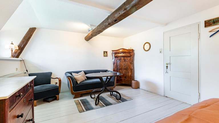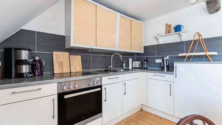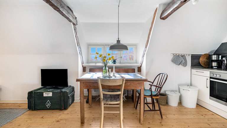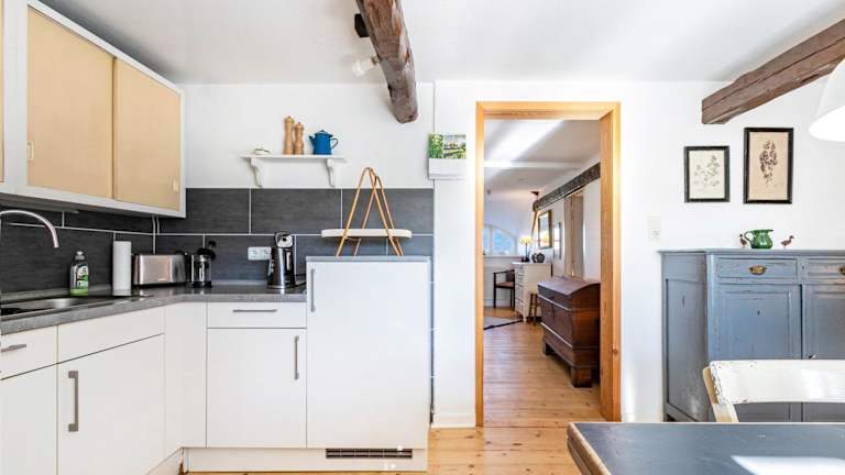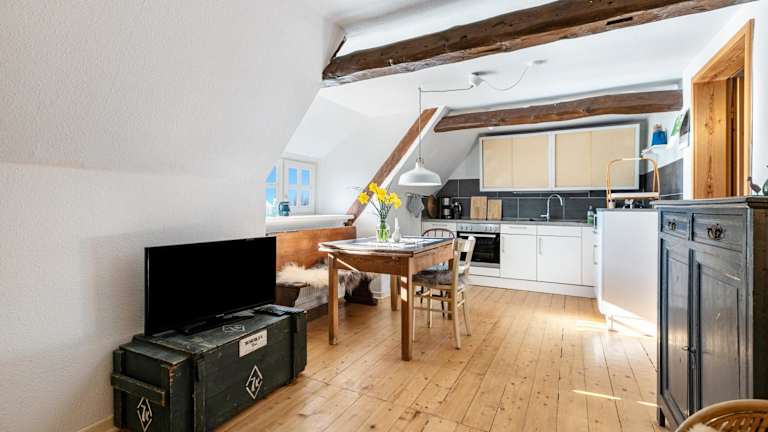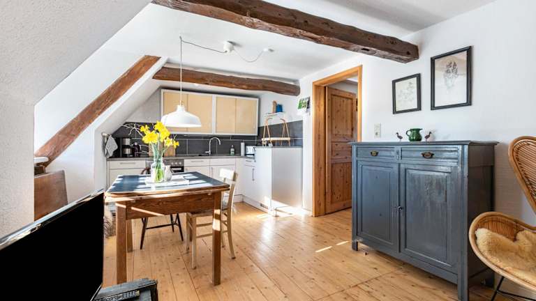 Die Ferienwohnung ist mit zwei Schlafzimmern, einem Badezimmer, Bettwäsche, Handtüchern sowie einem TV mit Satellitenkanälen ausgestattet. Zudem ist eine voll ausgestattete Küche vorhanden, die den Gästen eine Selbstversorgung ermöglicht, sowie eine Terrasse mit Blick auf den Garten.