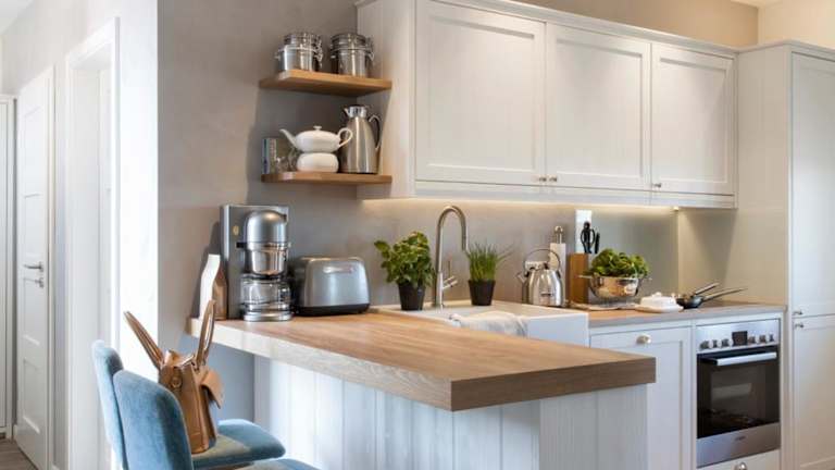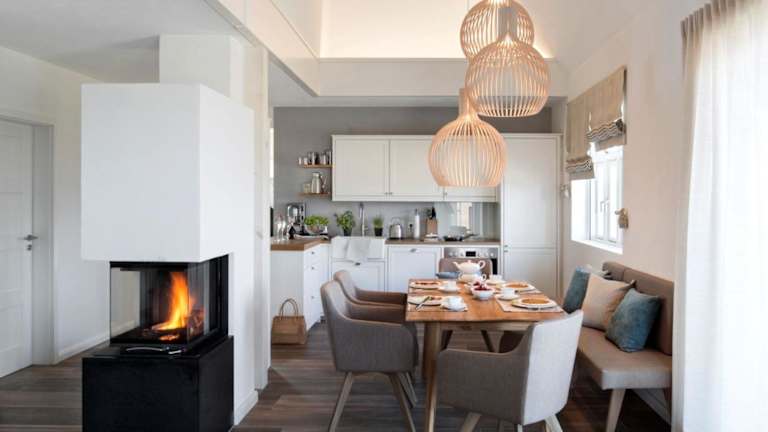 Die Unterkunft bietet eine voll ausgestattete Küche, die die Zubereitung eigener Mahlzeiten ermöglicht, und im Essbereich können die Gäste ihre Speisen genießen.