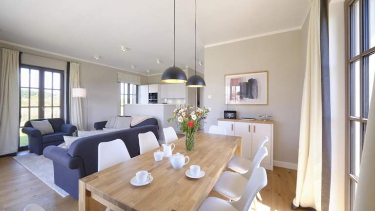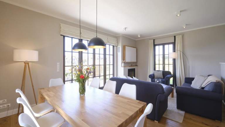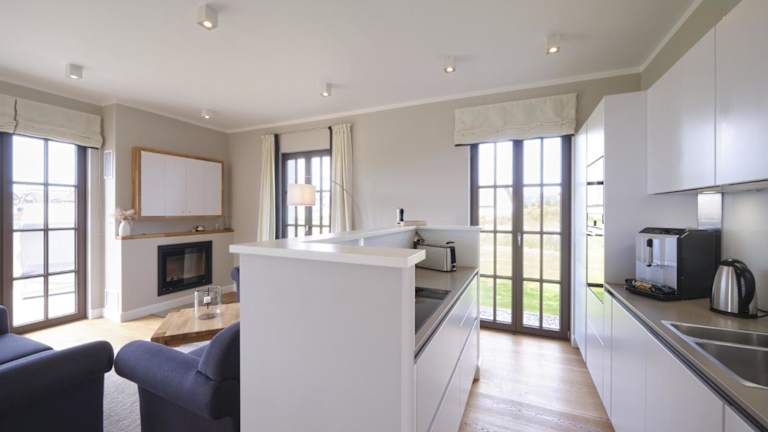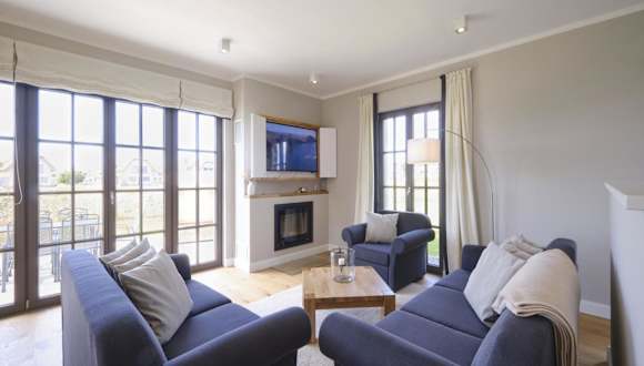 Reetland am Meer - Luxus Reetdachvilla mit 3 Schlafzimmern, Sauna und Kamin H18 bietet luxuriöse Übernachtungsmöglichkeiten mit kostenfreiem WLAN und Flachbild-TV. Die Villa ist modern gestaltet und umfasst drei Schlafzimmer sowie ein Wohnzimmer, das zu einem entspannten Aufenthalt einlädt.