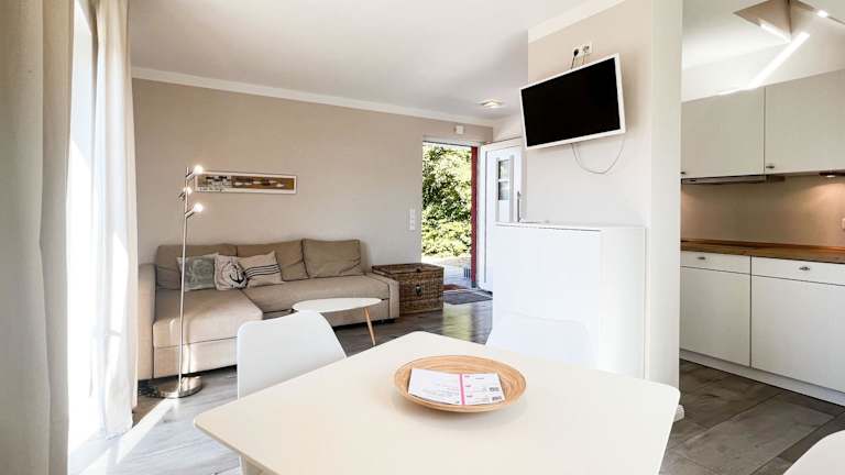 Die Ferienwohnung verfügt über 1 Schlafzimmer, ein Wohnzimmer, eine voll ausgestattete Küchenzeile mit Kühlschrank und Kaffeemaschine sowie 1 Badezimmer mit Dusche.