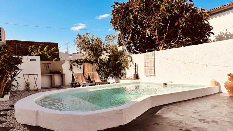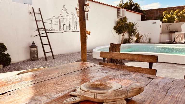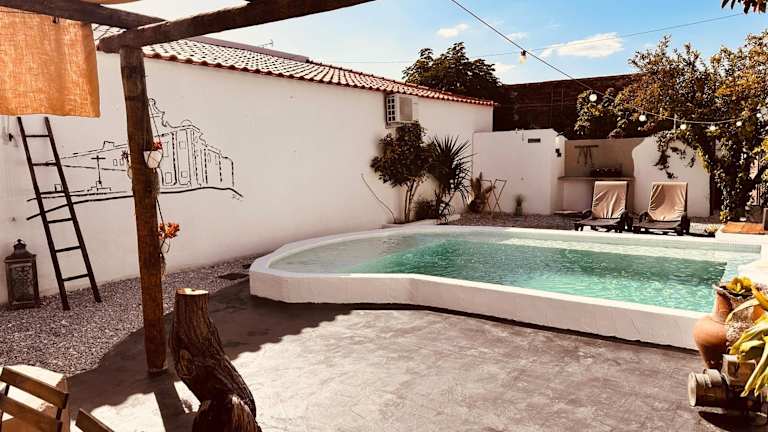 Refúgio do Frade bietet Übernachtungsmöglichkeiten in einem Ferienhaus, das mit einer Terrasse, einem Garten sowie einem Außenpool ausgestattet ist. Die Unterkunft überzeugt durch ihren Poolblick und bietet eine Veranda oder einen Patio.