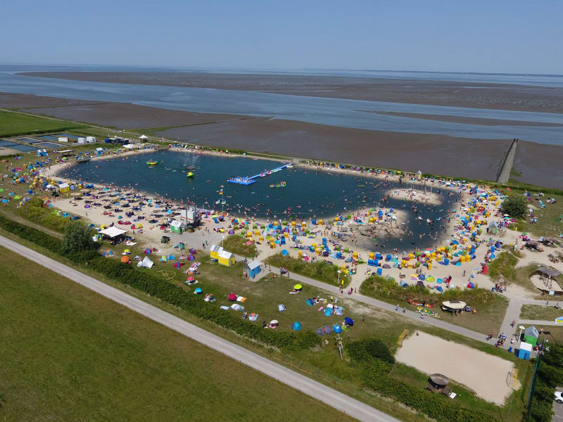 Wenn das Wetter draußen nicht mitspielen will, dann spielen Sie doch einfach woanders - in der Spielscheune Burhave (externer Anbieter gg. Gebühr), die Sie von der Regenbogen Ferienanlage problemlos erreichen, erwarten Sie auf 3.000 Quadratmetern Spiel, Spaß und Action für große und kleine Kinder. Freuen Sie sich auf eine Kletterberg mit Rutsche, Riesentrampolin, Bällepool, Fußball und Basketball, Wasserpool mit Schaufelradbooten, 45 Meter Superrutsche, Hüpfburg und viele spannende Attraktionen mehr. Dazu gibt es ein umfangreiches Animationsprogramm, Kinderpartys oder gemeinsames Basteln oder Kochen. Langeweile kennt man hier garantiert nicht. Keine Lust auf Ebbe und Flut? Aber ein Campingurlaub ohne Wasser ist kein richtiger Urlaub? Oder möchten Sie lieber am Strand ein gutes Buch lesen, während Ihre Kinder im sicheren Wasser plantschen und nicht zu weit raus schwimmen können? Dann sollten Sie auf keinen Fall die Nordsee Lagune Butjadingen verpassen. Die kostet zwar etwas Eintritt, liegt aber direkt neben der Regenbogen Ferienanlage Burhave und bietet mit 16.000 Quadratmetern jede Menge Platz zum Schwimmen, Plantschen und Toben. Außerdem gibt es hier auch extra flache Bereiche für Anfänger:innen, Tretboote für die ganze Familie und Sportmöglichkeiten zu Wasser und zu Land. Pirateninsel mitten in der Lagune inklusive. Für die Sicherheit sorgen außerdem die ausgebildeten Rettungsschwimmer:innen der DLRG.