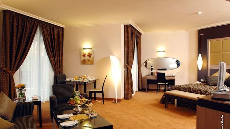 Die Zimmer sind großzügig geschnitten, in warmen Farben gehalten und mit modernen Holzmöbeln ausgestattet. Jedes Zimmer verfügt über einen Flachbild-Sat-TV, eine Minibar sowie ein eigenes Badezimmer mit Pflegeprodukten und Haartrockner. Die Zimmer sind zusätzlich schallisoliert und bieten einen Balkon mit Blick auf die Umgebung.