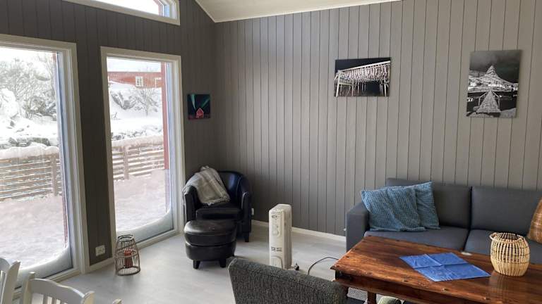 Das Ferienhaus befindet sich in Stamsund, in der Nähe des Flughafens Leknes, der etwa 15 km entfernt ist. Die Umgebung bietet Möglichkeiten zum Skifahren.