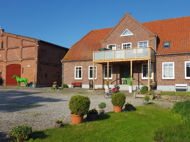 Wohlfühlen, entspannen nicht nur in der sehr gemütlichen, im Landhausstil eingerichteten Wohnung Südstrand. Der große Balkon, mit Blick auf die Pferdekoppel, ist offen nach Osten, Süden und Westen. Dies bedeutet, schon beim Frühstück können Sie das Sonnenlicht genießen und anschließend den Sonnenuntergang beobachten. Frühstück im Bett? Vielleicht mit der ganzen Familie? Das 2x2m große Bett mit verstellbarem Lattenrost lässt dies auf jeden Fall zu! Lassen Sie sich überraschen! Verdunklungsrollos sind an allen Fenstern angebracht, um Ihnen möglichst viel Privatsphäre zu gewähren. So können Sie morgens ausschlafen, ohne von den Sonnenstrahlen des Morgens geweckt zu werden. Angrenzend an dem Balkon, befindet sich die gemütliche Essecke im Chabby Stil, sowie der Wohnraum mit Schlafsofa und Fernseher. Die offene, helle Küche ist voll ausgestattet mit Mikrowelle, Spülmaschine, Kaffeemaschine, Toaster..., auch Geschirrhandtücher sind vorhanden! Großen Wert haben wir auch auf allergikerfreundliche Einrichtungen gelegt. Es gibt keinen Teppichboden, nur Holzböden und keine dicken Vorhänge an den Fenstern. Sollte Ihnen der Platz auf dem Balkon mal nicht reichen, können Sie es sich gerne auf den Gartenmöbeln oder im Strandkorb im eingezäunten, idyllischen Garten gemütlich machen. Auch Ihren Liebling können Sie bei uns mitnehmen und ihn hier herumtollen lassen! Für die milden Abende haben wir einen Pony-Treff mit Grillplatz und Blick auf den Reitplatz. Natürlich freuen sich unsere Ponys auf kleine und große Besucher, die auch gerne ab Mittag bei uns helfen dürfen. Wir bieten einen Reitplatz,eine lichtdurchflutete, geräumige Reithalle und große, freundliche Pferdeboxen. Individueller Reitunterricht in kleinen Gruppen. Besonders achten wir auf Unterricht mit pädagogischen Inhalten für Kinder mit ADS oder ADHS, individuelle Talentförderung und intensive Kommunikation mit den Pferden. Ein besonderes Angebot von uns ist der legendäre "Pony-Führerschein®"! Hier gibt es ein Reiterlebnis mit therapeutischem Ansatz, das über das normale Angebot der Reitstunde hinausgeht! Für alle Kinder ab 4 Jahren und Erwachsene, die sich einen Zugang zum Pferd wünschen. Sie finden auf unserem Reiterhof Ruhe und Entspannung und können sich ganz auf sich und Ihr Pferd konzentrieren und wir konzentrieren uns ganz auf Sie. Wer möchte hat Familienanschluss! Treffpunkt nachmittags zum Cappuccino am Reitplatz, oder zum Grillen am Abend. Ihre Kinder spielen auf unserer großen Spiel- und Liegewiese. Auf der Familien-Insel Fehmarn gibt es viel für Sie zu sehen. Ein ruhiger Naturstrand in nächster Nähe lädt zum Schwimmen und zu langen Spaziergängen mit Ihrem Hund nicht nur im Sonnenuntergang ein. Wenn es mal mehr Bewegung sein soll, können Sie sich hier in Bannesdorf ein Fahrrad leihen und die ganze Insel auf ihren Radwegen erkunden. Für die Abenteuerlustigen gibt es außerdem in nächster Nähe die Möglichkeit zu angeln, kitesurfen, tauchen oder windsurfen! Auch ein mit wunderschönen Details ausgestatteter Mini-Golfplatz in Meeschendorf, für Profis in WUlfen ein großer Golfplatz mit Blick aufs Meer, oder das Meereszentrum in der kopfsteingepflasterten Innenstadt Burg bieten alles Mögliche an Abwechslung! Für die gemütlicheren Tage gibt es aber auch eine gute Busverbindung über die gesamte Insel. Im 200m entfernten Landgasthof Meetz können Sie den Abend ausklingen lassen, auf Wunsch auch mit Ihrem Hund. Die besten Voraussetzungen für einen gelungenen Urlaub!