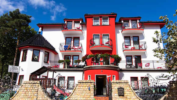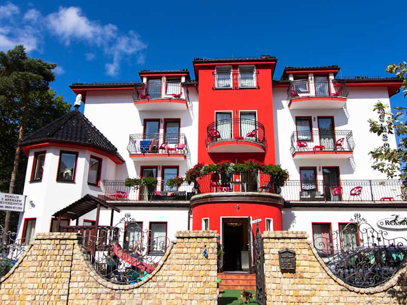 Das Hotel Reksor in Misdroy bietet Ihnen eine komfortable Unterkunft in der Nähe von verschiedenen Sehenswürdigkeiten. Genießen Sie den kostenlosen WLAN-Zugang und die kostenfreien Privatparkplätze. Die Zimmer verfügen über eine voll ausgestattete Küchenzeile, einen Flachbild-TV und ein eigenes Bad. Einige Zimmer bieten zudem einen Balkon oder einen separaten Sitzbereich. Entspannen Sie im Garten mit Grillmöglichkeiten oder nutzen Sie den Kinderspielplatz. Die Lage des Hotels ermöglicht es Ihnen, die Umgebung zu erkunden und Aktivitäten wie Wandern zu unternehmen. Besuchen Sie die beliebten Sehenswürdigkeiten in der Nähe wie den Strand Misdroy, den Walk of Fame und das Wachsmuseum. Der Flughafen Heringsdorf ist nur 27 km entfernt.