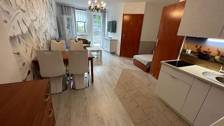 Das Hotel Reksor befindet sich in Misdroy, nur 2,2 km von der Plaża Świnoujście Warszów und 14 km vom Bahnhof Swinemünde entfernt. Die Lage ermöglicht es Ihnen, sowohl den Strand als auch die Stadt bequem zu erreichen. In der Nähe finden Sie auch verschiedene Sehenswürdigkeiten wie den Walk of Fame von Misdroy und das Wachsmuseum Misdroy. Der Flughafen Heringsdorf ist ebenfalls gut erreichbar, nur 27 km entfernt.