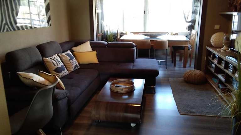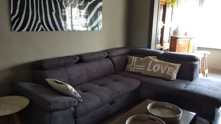 Die Ferienwohnung umfasst drei Schlafzimmer und ein Wohnzimmer mit einem Flachbild-TV. Die Küche ist gut ausgestattet mit einem Kühlschrank und einem Geschirrspüler. Es stehen zwei Badezimmer zur Verfügung, die jeweils mit einem Bidet ausgestattet sind. Handtücher und Bettwäsche werden in der Unterkunft bereitgestellt. Ein Innenpool ist ebenfalls vorhanden.