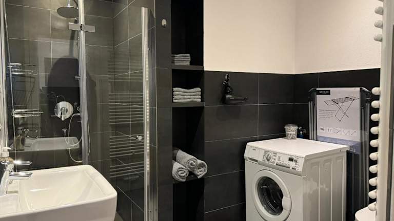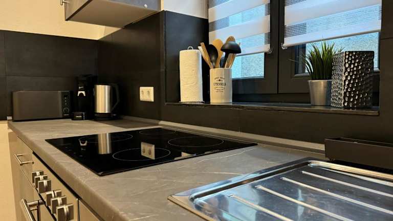 Die Ferienwohnung besteht aus einem Schlafzimmer, einem Wohnzimmer und einer voll ausgestatteten Küche, die mit einem Kühlschrank und einer Kaffeemaschine ausgestattet ist. Des Weiteren gibt es ein Badezimmer mit Dusche und Haartrockner. Handtücher und Bettwäsche werden bereitgestellt.
