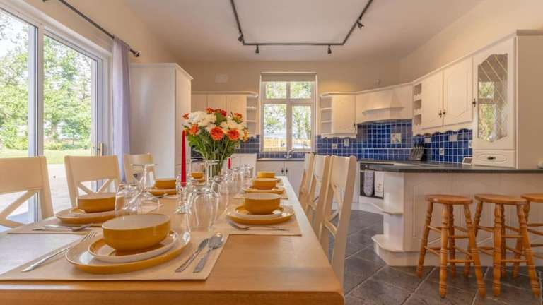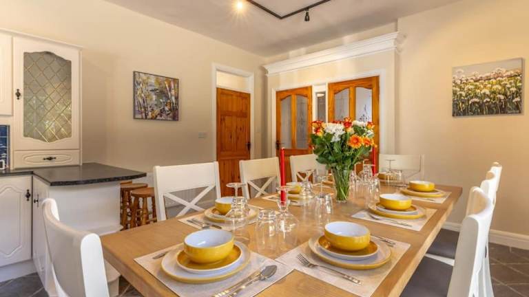 Die Unterkunft umfasst fünf Schlafzimmer sowie eine Küche, die mit einem Kühlschrank und Geschirrspüler ausgestattet ist. Zu den Annehmlichkeiten gehören ein Flachbild-TV, ein Sitzbereich und drei Badezimmer mit Dusche. Handtücher und Bettwäsche werden bereitgestellt.