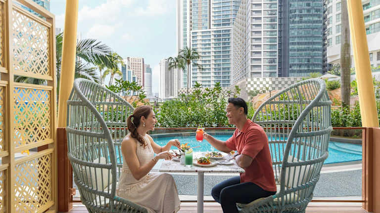 "Im Renaissance Kuala Lumpur Hotel haben die Gäste die Wahl zwischen zwei Restaurants. Im Hauptrestaurant ""Evolution Café"" werden asiatische und internationale Gerichte mit Showcooking angeboten. Im Restaurant ""Poolside Gazebo"" können die Gäste leichte Gerichte à la carte bestellen. Eine Bar steht ebenfalls zur Verfügung."