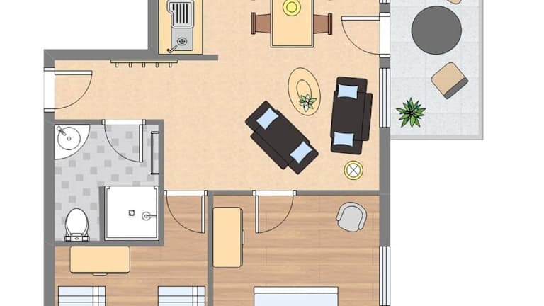 Die Ferienwohnung umfasst zwei Schlafzimmer, ein Badezimmer mit Dusche und Haartrockner sowie eine voll ausgestattete Küche. Zusätzliche Annehmlichkeiten wie Heizung und kostenloses WLAN in allen Bereichen sind ebenfalls vorhanden.