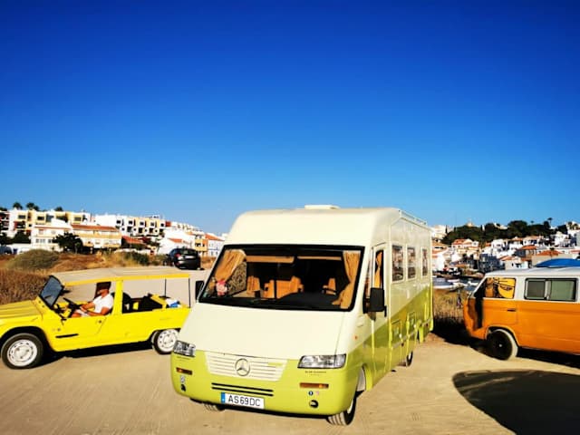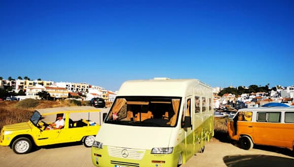 Rent a BlueClassics 's Campervan AUTOSTAR bietet eine Zelt-Lodge-Ausstattung mit Blick auf die Stadt und das Meer.