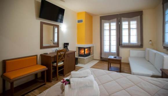 Die Zimmer im Rentinia Inn sind gemütlich und komfortabel eingerichtet. Jedes Zimmer verfügt über einen eigenen Kamin, der für eine warme und einladende Atmosphäre sorgt. Die Duschen sind mit Hydromassagedüsen ausgestattet, die Ihnen eine entspannende und erfrischende Erfahrung bieten. Die Zimmer sind klimatisiert und in warmen Erdtönen gehalten. Sie bieten zudem einen Balkon mit herrlichem Bergblick. Zur Ausstattung gehören auch ein Flachbild-TV, eine Minibar und eine Kaffeemaschine. Kostenfreie Pflegeprodukte und Hausschuhe sind ebenfalls vorhanden.